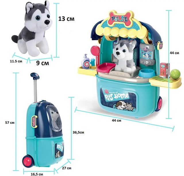 Коли ми Їдемо в подорожі або просто йдете на прогулянку, так хочеться взяти із собою своїх маленьких друзів, але для довгих прогулянок із неприємними погодними умовами це може стати проблемою. А з таким набором 2-1 тепер легко створити будь-які ігрові сюжети. Набір складається з валізи на колесах, яка має прозоре віконце для улюбленця, але якщо зупинитися й відкрити його повністю, то можна створити свій власний салон, адже все необхідне вже є всередині.