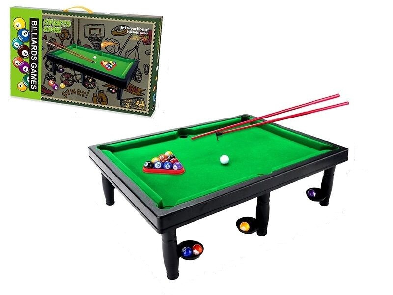 Цей компактний столик для більярда стане чудовим доповненням до сімейної колекції настільних ігор і чудовою можливістю для нових спогадів про добре проведений час із сім'єю. У наборі зі столиком йдуть два посохи та шари, а розбірні ніжки столика роблять його компактним і портативним.